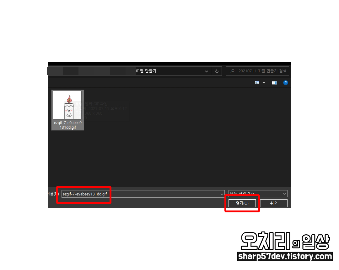 저는 아까 위에서 7장의 이미지로 만들었던 움짤 이미지를 다운로드했다가 불러오기로 다시 가져왔습니다.