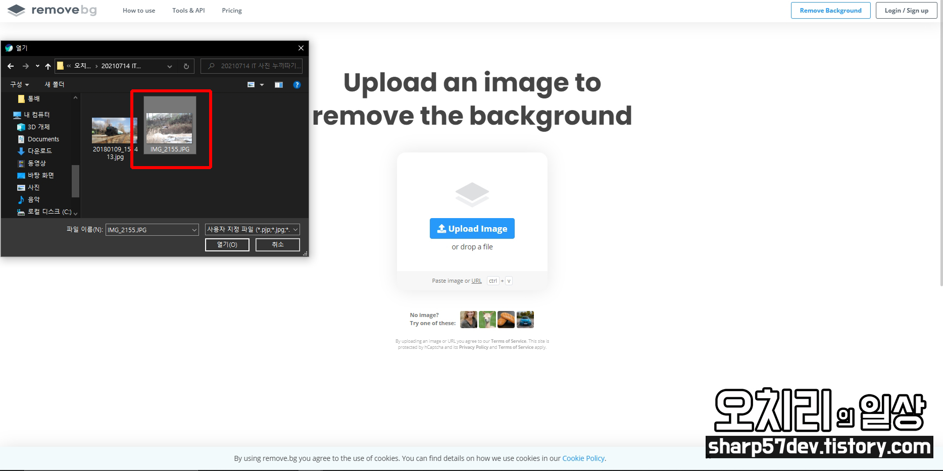 이때 이미지 선택 말고도.. 이미지를 드래그 앤 드롭으로도 이미지를 업로드를 할 수 있습니다.