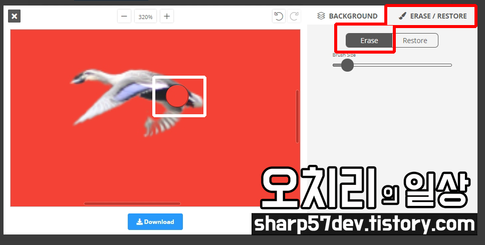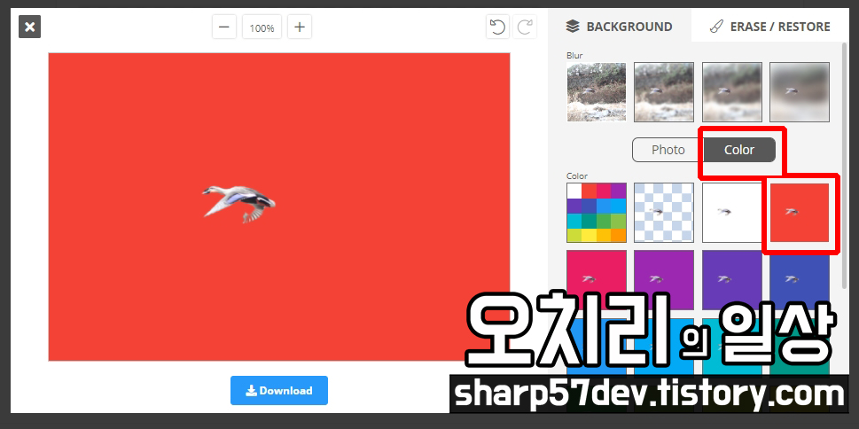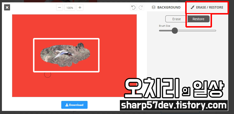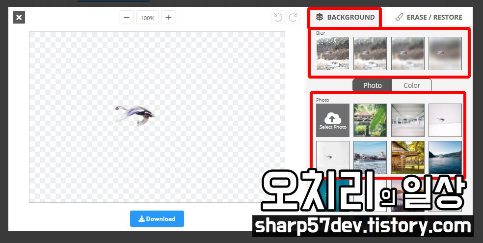오른쪽의 파란 [Download] 버튼을 누르면 배경이 지워진 이미지가 다운로드됩니다.