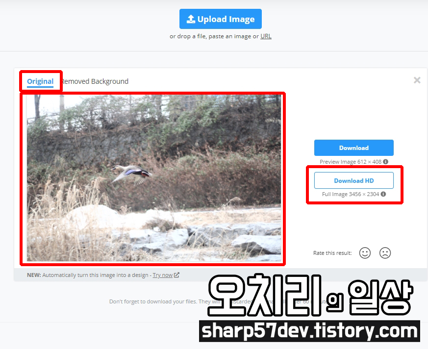 이는 지금 누끼를 딴 이미지이고 [Oriiginal] 탭을 누르면 배경을 지우기 전 본 이미지가 나타납니다.