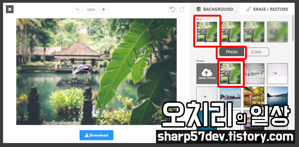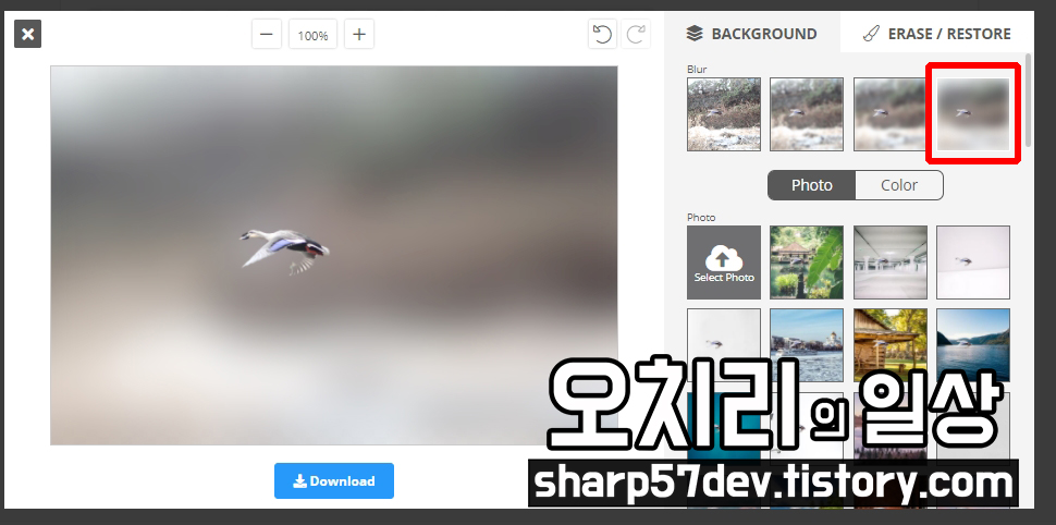 이 외에도 Photo 옵션에서 샘플 이미지를 골라 배경을 지운 청둥오리 사진을 합성할 수도 있습니다.