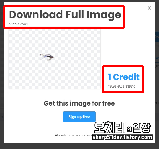 이때 1 Credit이라는 문구가 뜨는 걸 보니 높은 해상도의 이미지는 유료인가 봅니다.