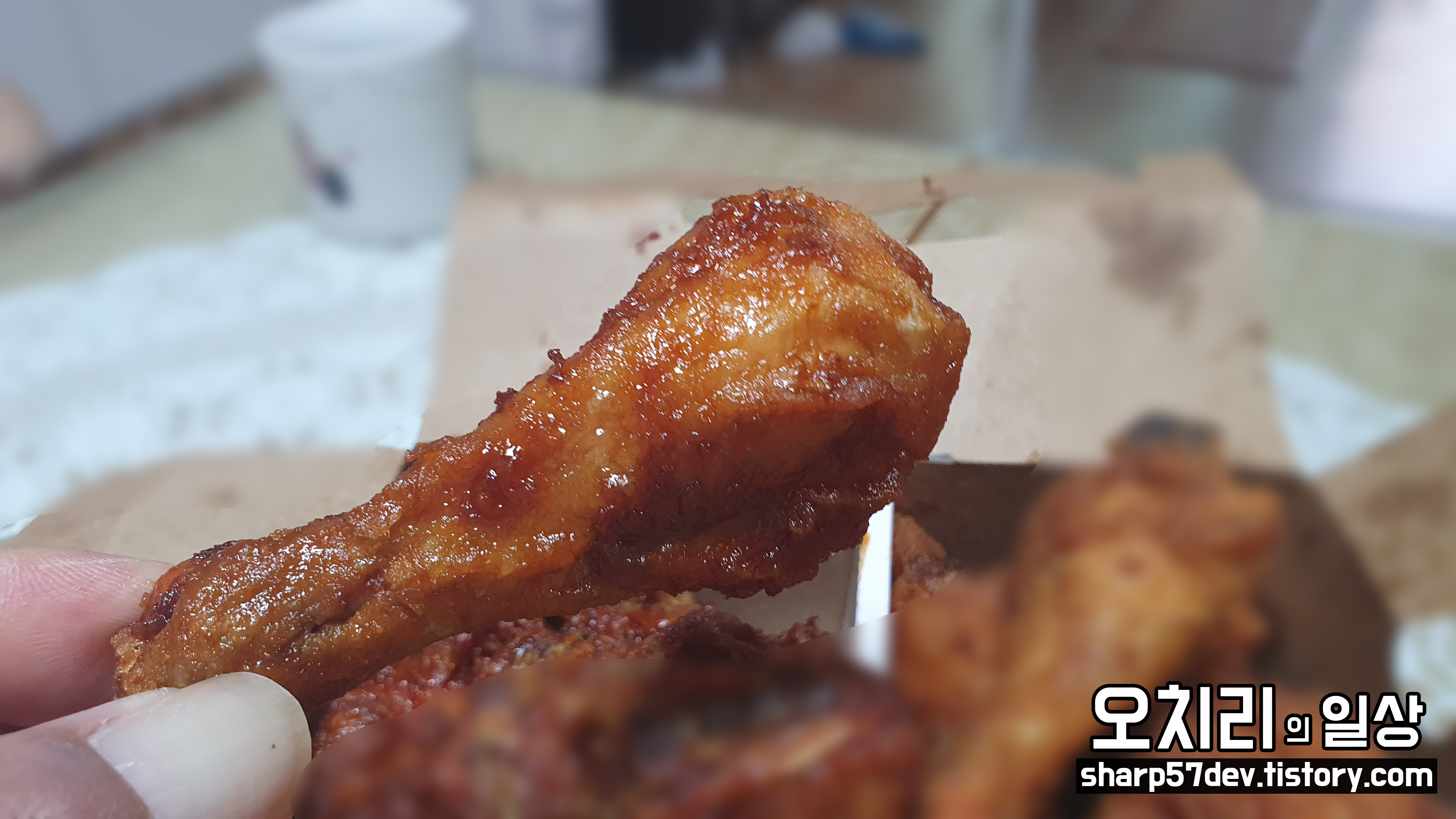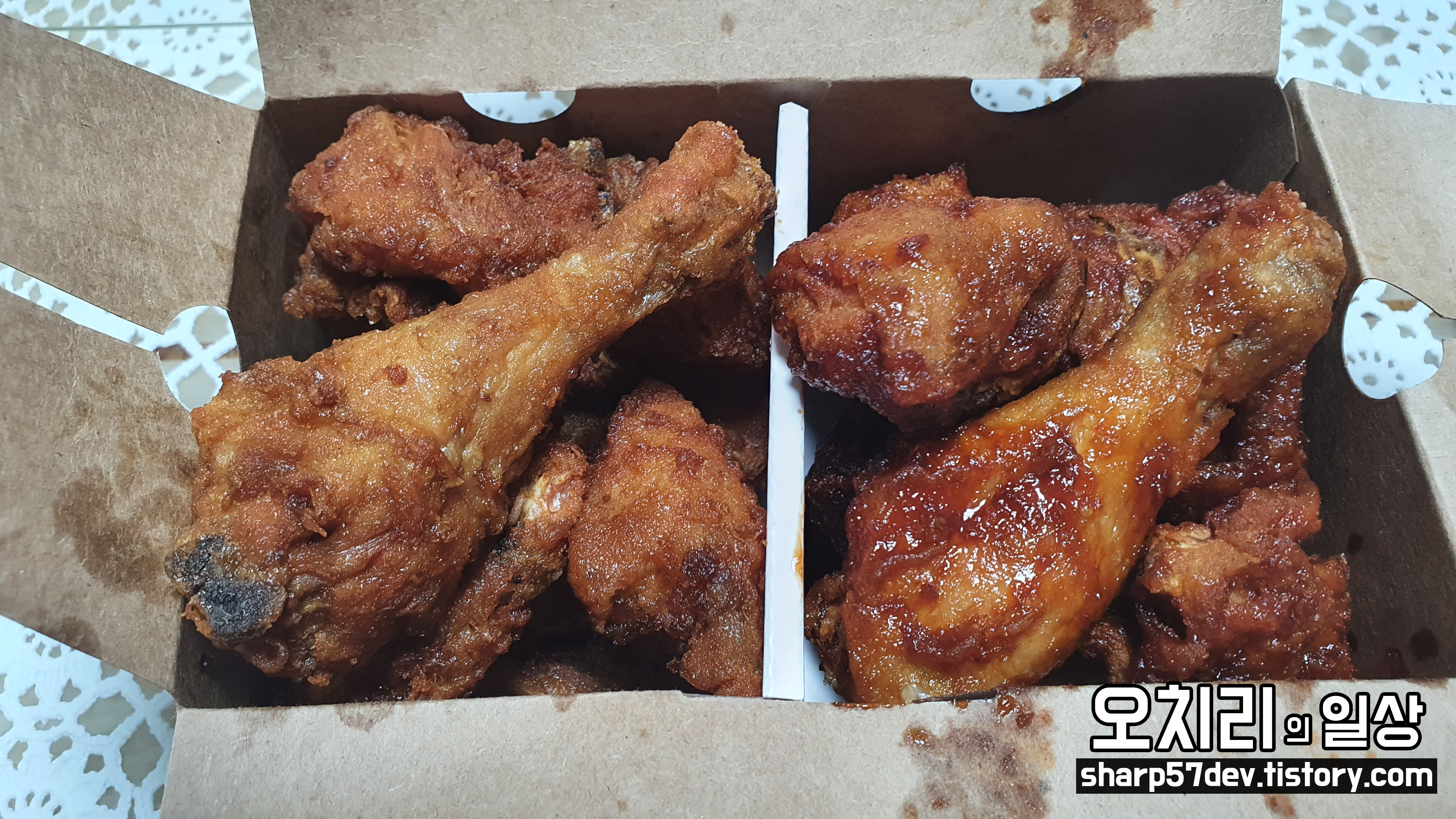 개인적으로는 간장 베이스 치킨이 더 맛있었지만.. 같이 드신 어머니는 매콤한 고추 베이스의 치킨이 맛난다고 하시더군요.