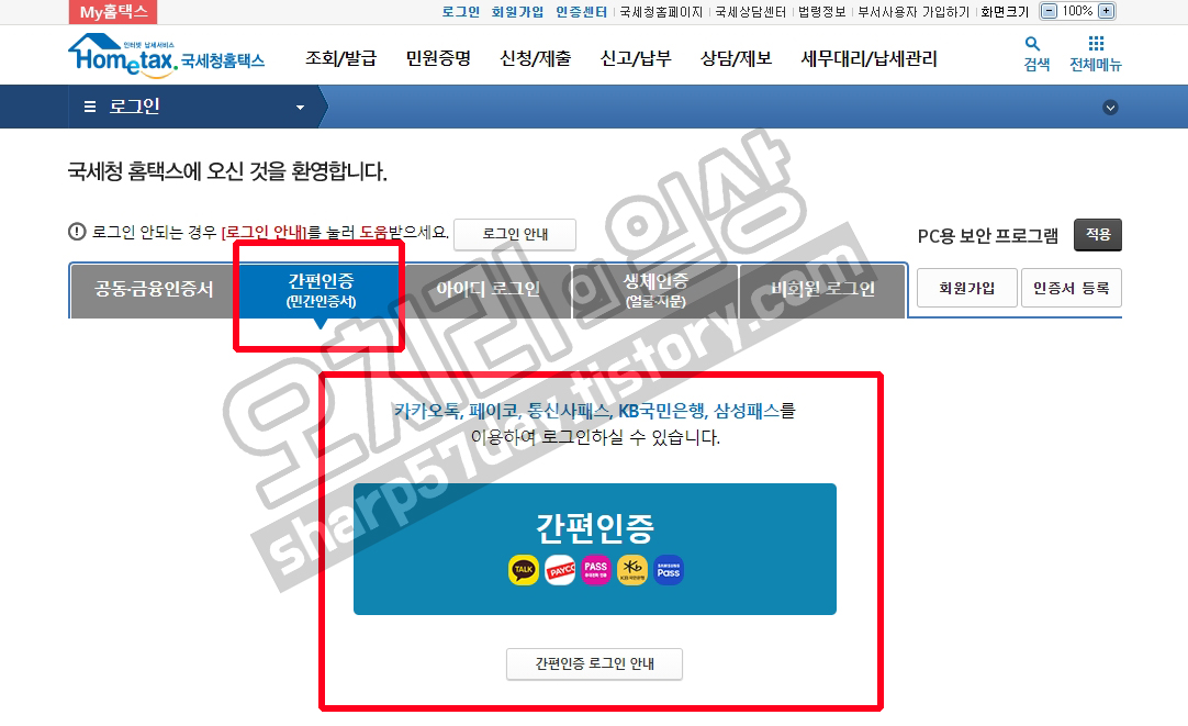 정부24 나 국세청 홈택스에서 간편 인증 로그인을 사용하네요.