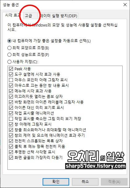 "성능 옵션" 창으로 돌아옵니다.