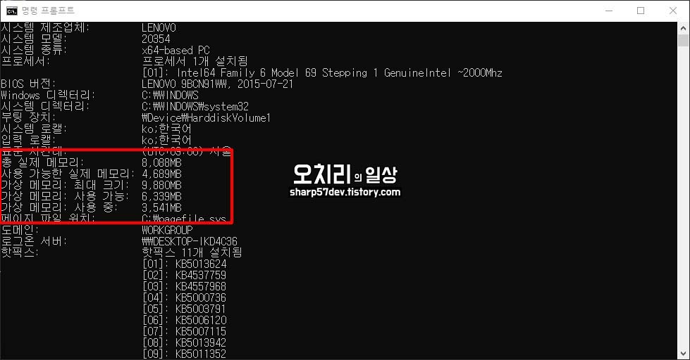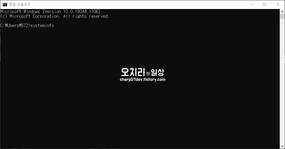 그리고 명령 프롬프트 창에 "systeminfo"라고 입력 후 엔터를 누릅니다.
