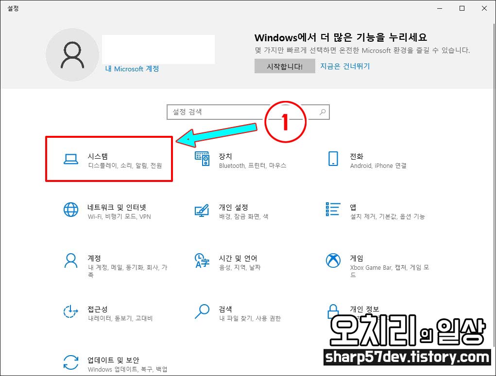 여기에서 1번인 "시스템" 아이콘 버튼을 클릭합니다.