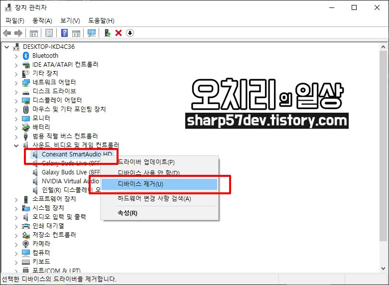 6. 장치 관리자에서 사운드 드라이버 업데이트 및 삭제 후 새로 설치
