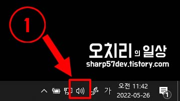 그중에 소리 아이콘(1번)을 좌클릭합니다.