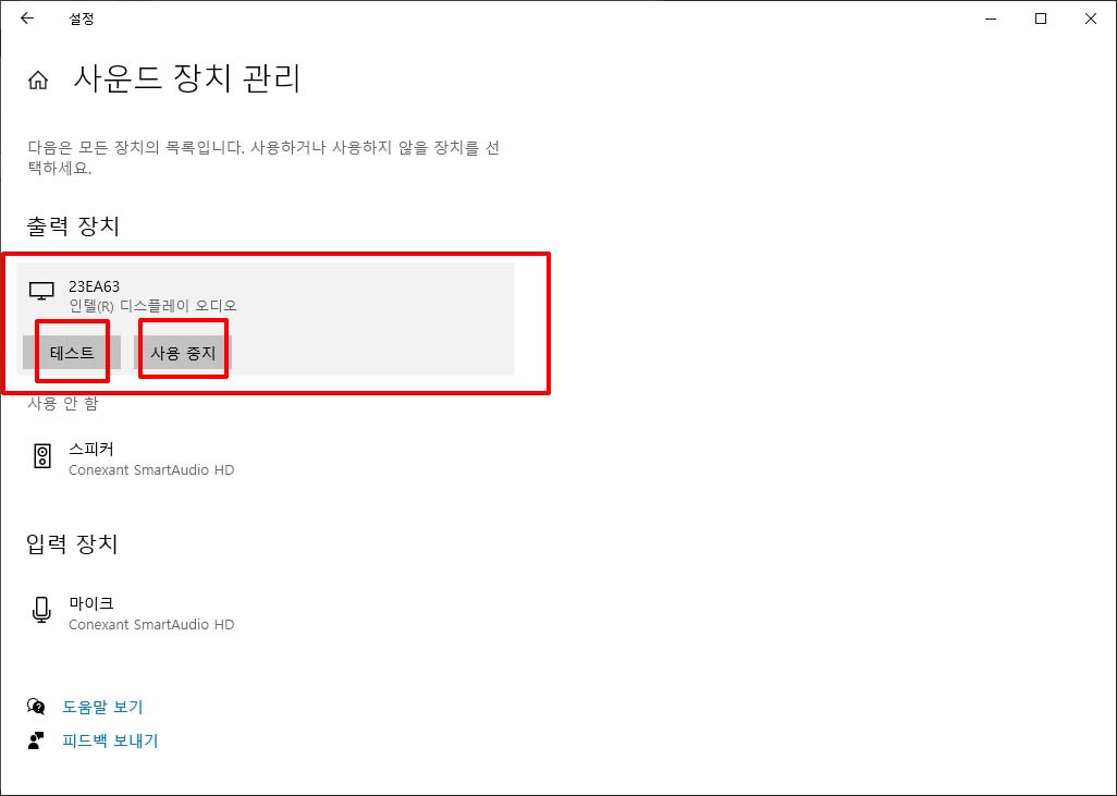 "23EA63 인텔 디스플레이 오디오" 장치를 클릭하여 선택합니다.