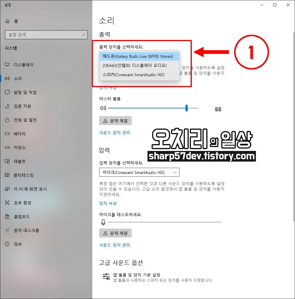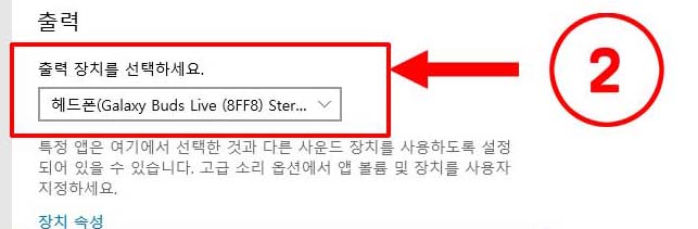 위 2번 "출력 장치를 선택하세요" 드롭박스를 클릭합니다.