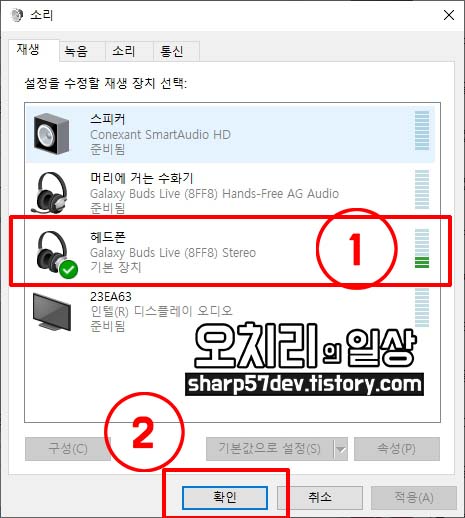 이때 1번의 헤드폰과 2번의 스피커가 따로 체크 선택이 되어있습니다.