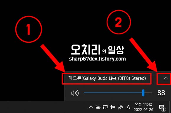 내가 듣고 싶은 소리 장치로 선택이 안되어있으면, 다른 소리 장치 선택을 위해 2번 아이콘을 클릭합니다.