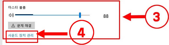 3번 마스터 볼륨도 음소거나 볼륨이 0 으로 되어있지 않은지 확인합니다.