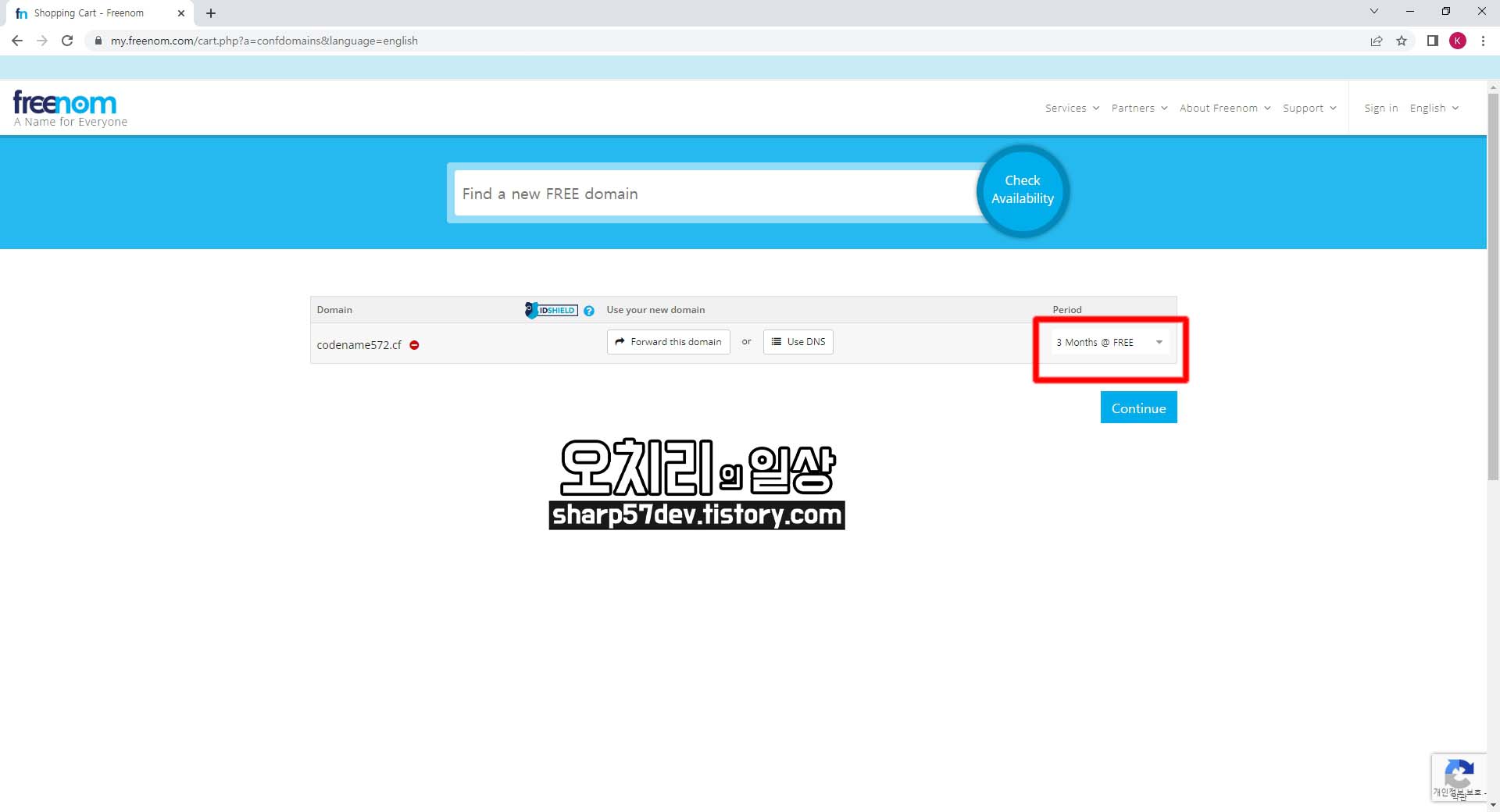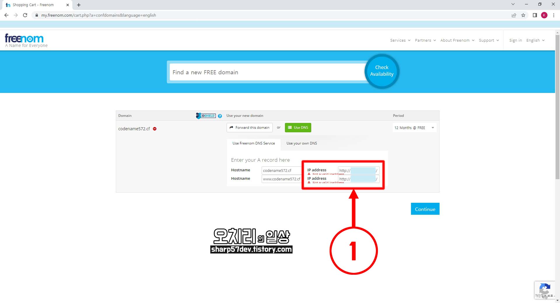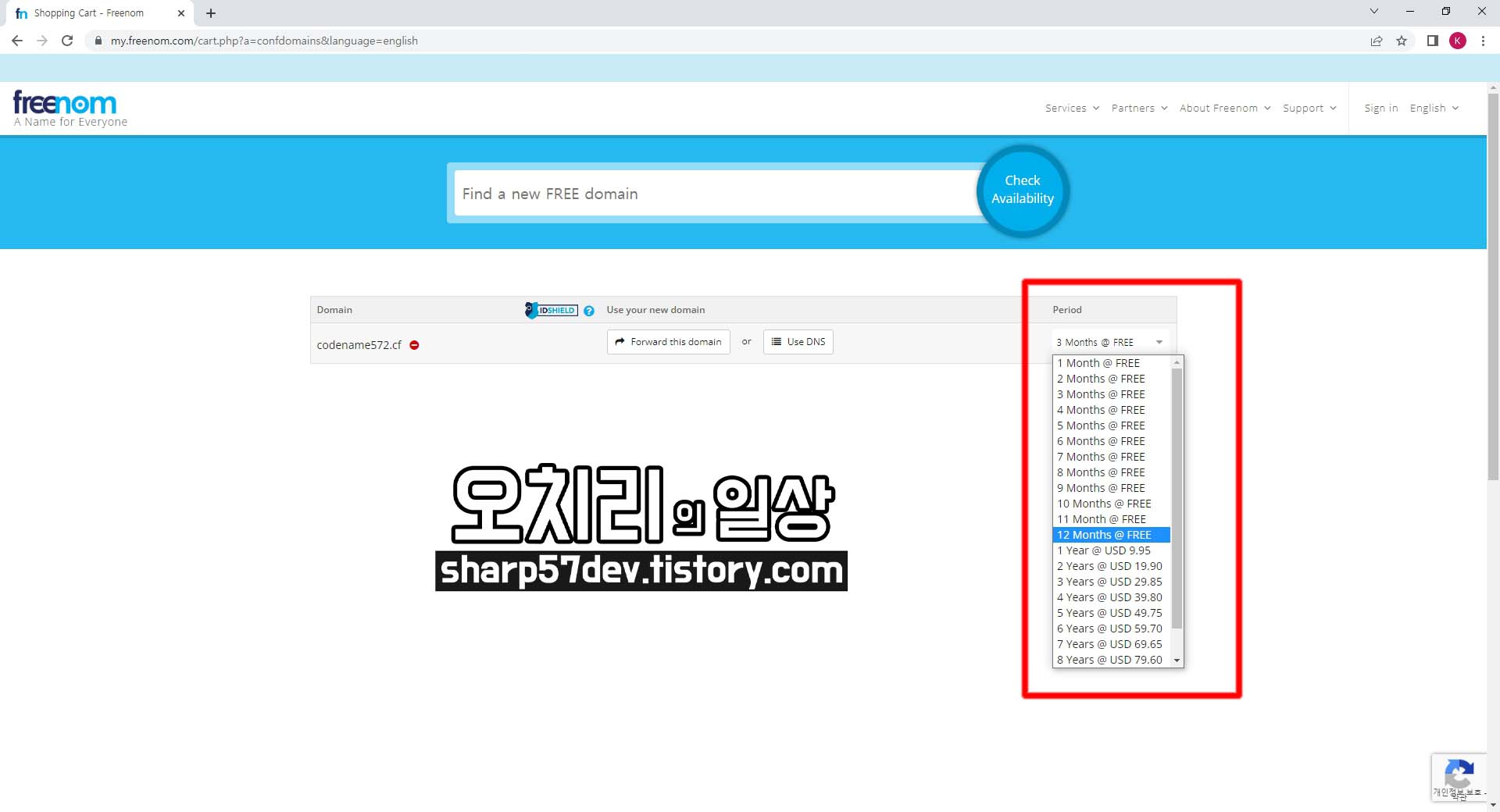 그리고 무료 도메인을 12개월간 대여한 것이니, 12개월이 지나면 도메인이 자동으로 대여가 중단됩니다.