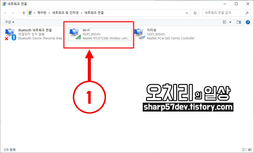 다시 네트워크 연결창으로 돌아와서 ①[이더넷]도 [Wi-Fi]와 동일한 방법으로 속성을 변경합니다.