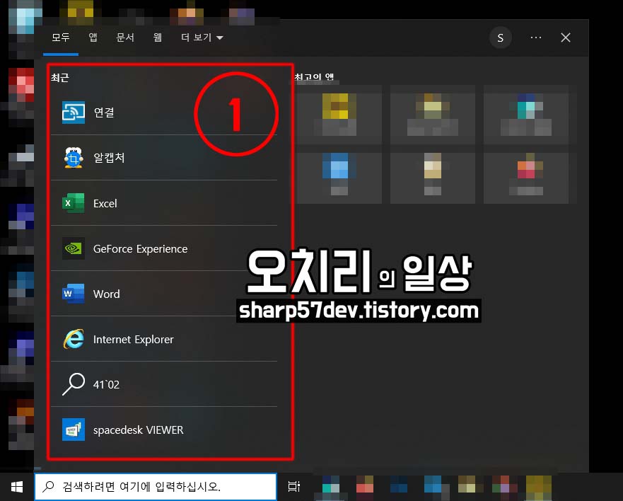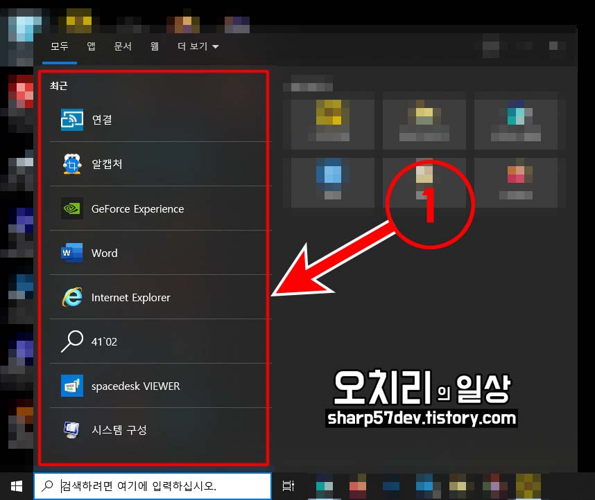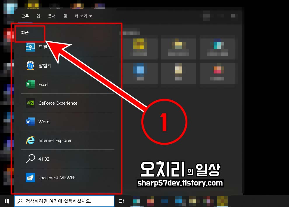 1. 최근 활동했던 응용프로그램 목록 삭제