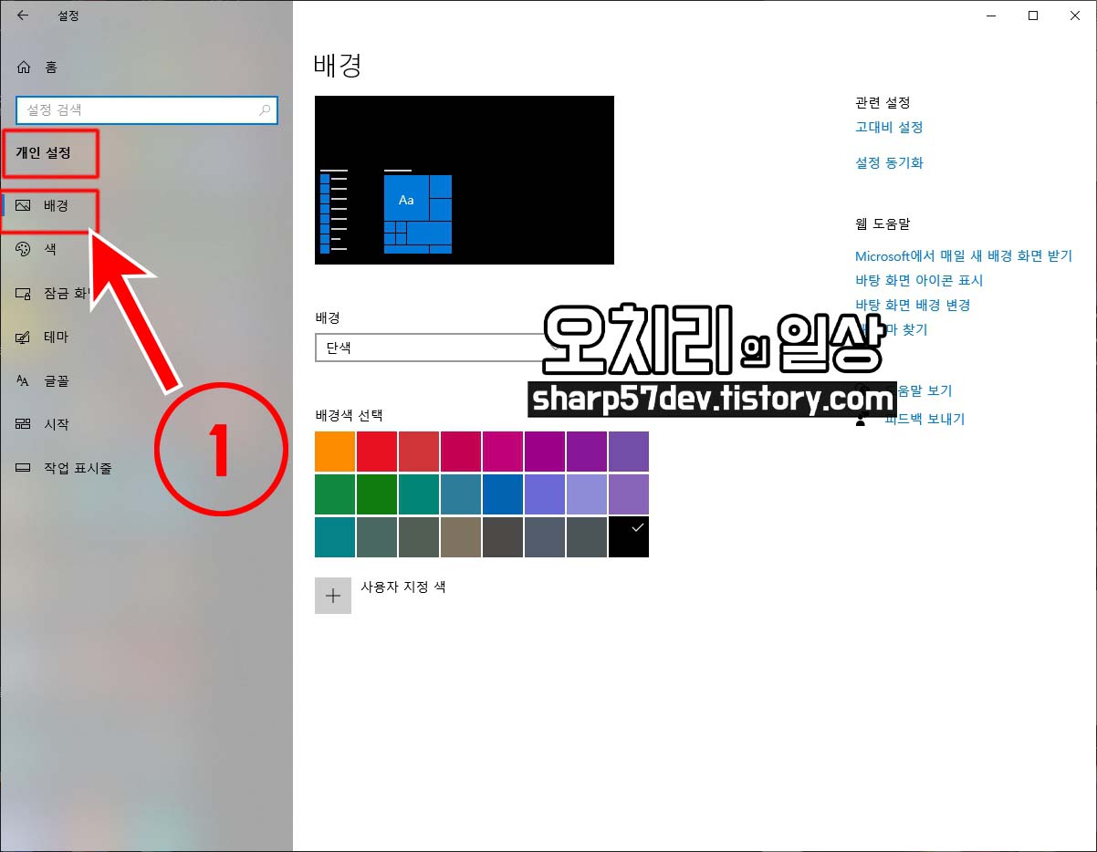 일단 개인설정 > 배경으로 들어옵니다.