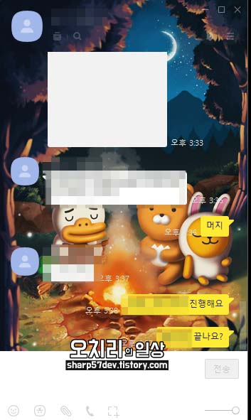 위 이미지는 카카오톡 채팅창의 배경화면을 일러스트 그림으로 변경한 채팅창입니다.