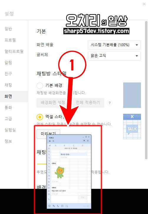 카카오톡 엑셀 테마 및 기본 배경 PC버전에서 설정 방법