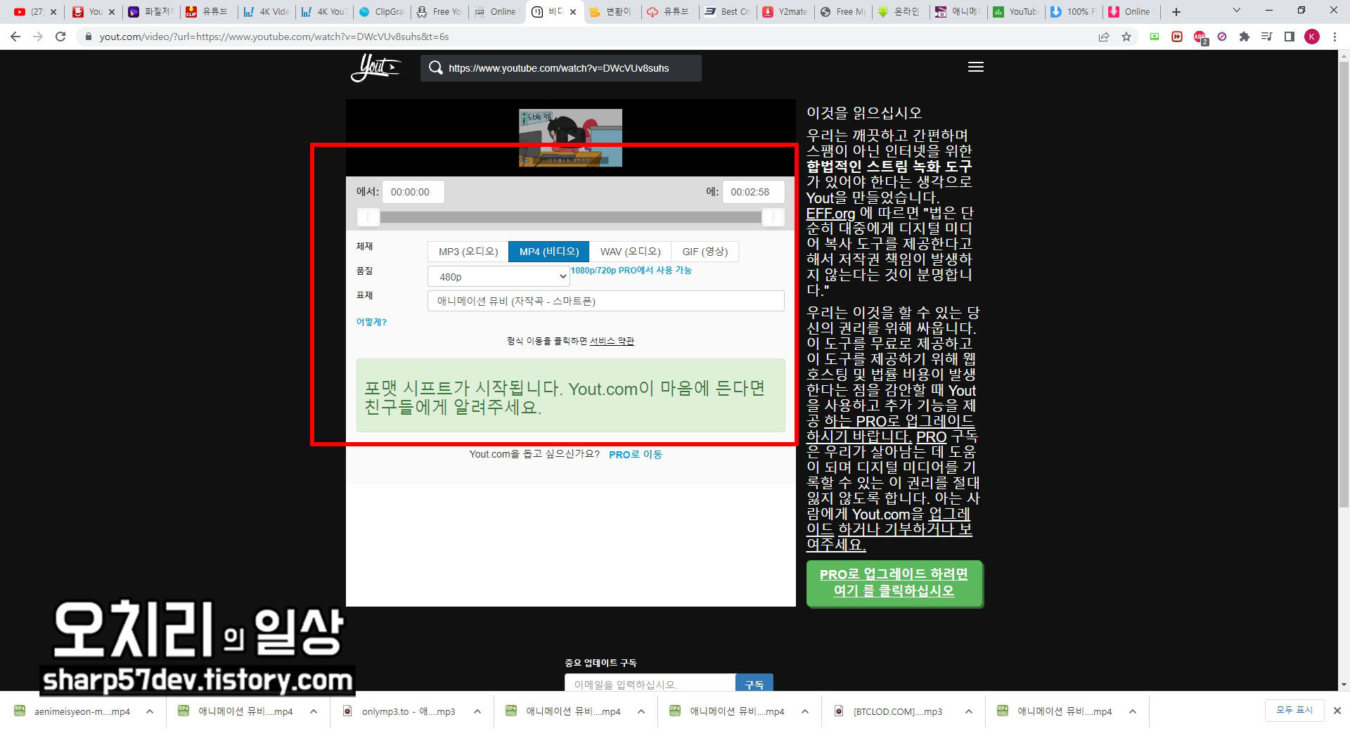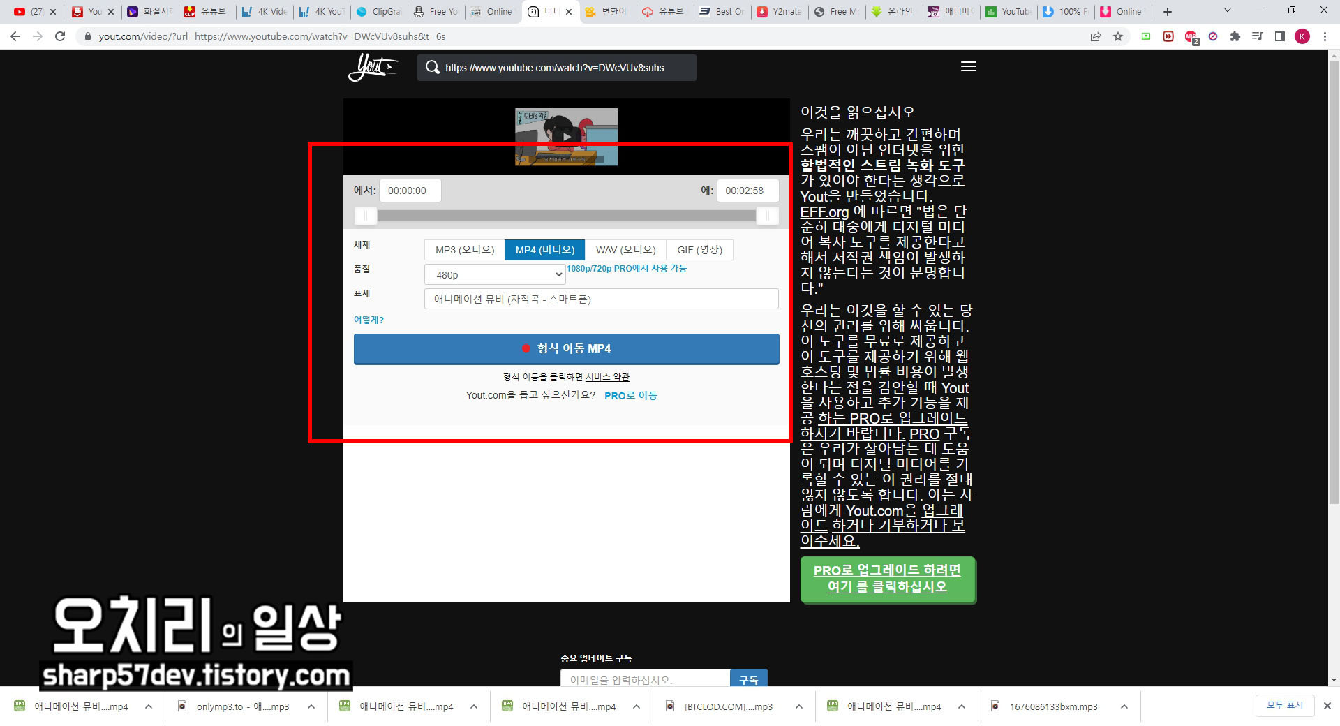 일단 저는 제 유튜브 동영상 주소로 테스트해 보겠습니다.