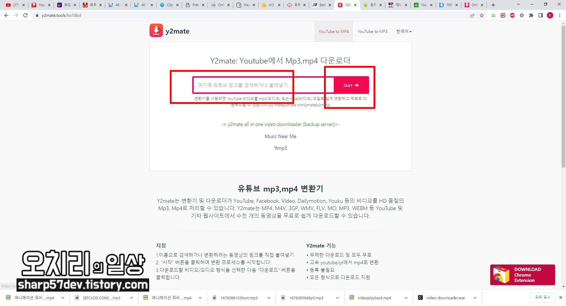 이 또한 첫 화면에서 빈칸에 동영상 url 주소를 넣어 start버튼을 누릅니다.