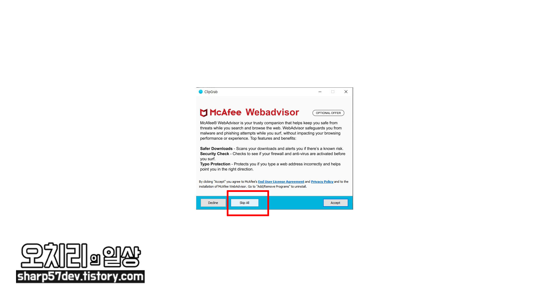 필요 없는 프로그램까지 설치하기 싫으시면 "Skip All" 버튼을 눌러 넘어갑니다.