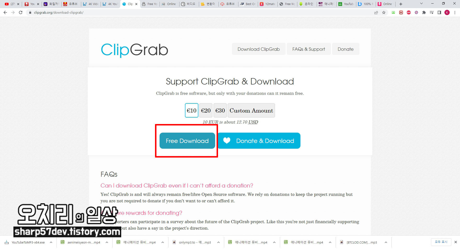 고해상도 동영상을 다운받으려면 위 사이트에서 안내하는 "Free Download"버튼을 눌러 프로그램을 다운로드 받습니다.