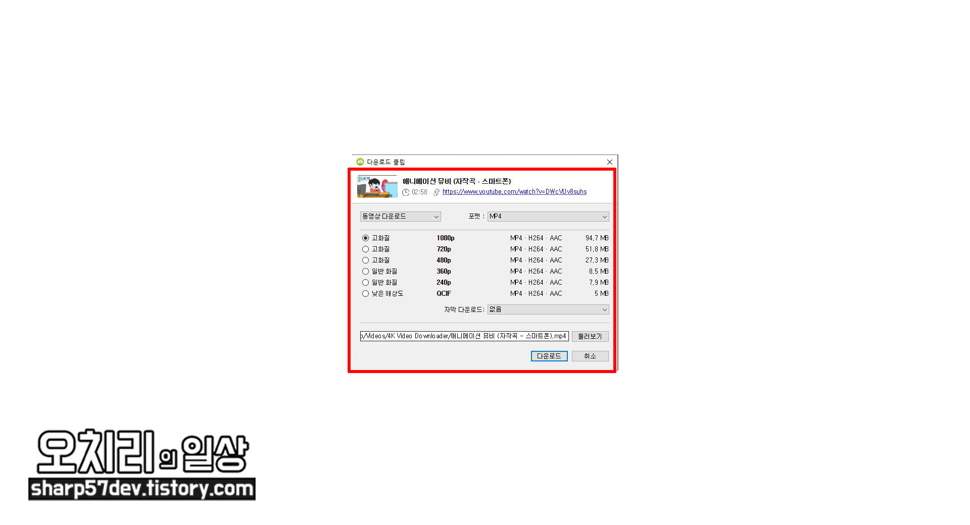동영상이나 음원을 고르고 또 해상도를 고르고 다운로드를 합니다.