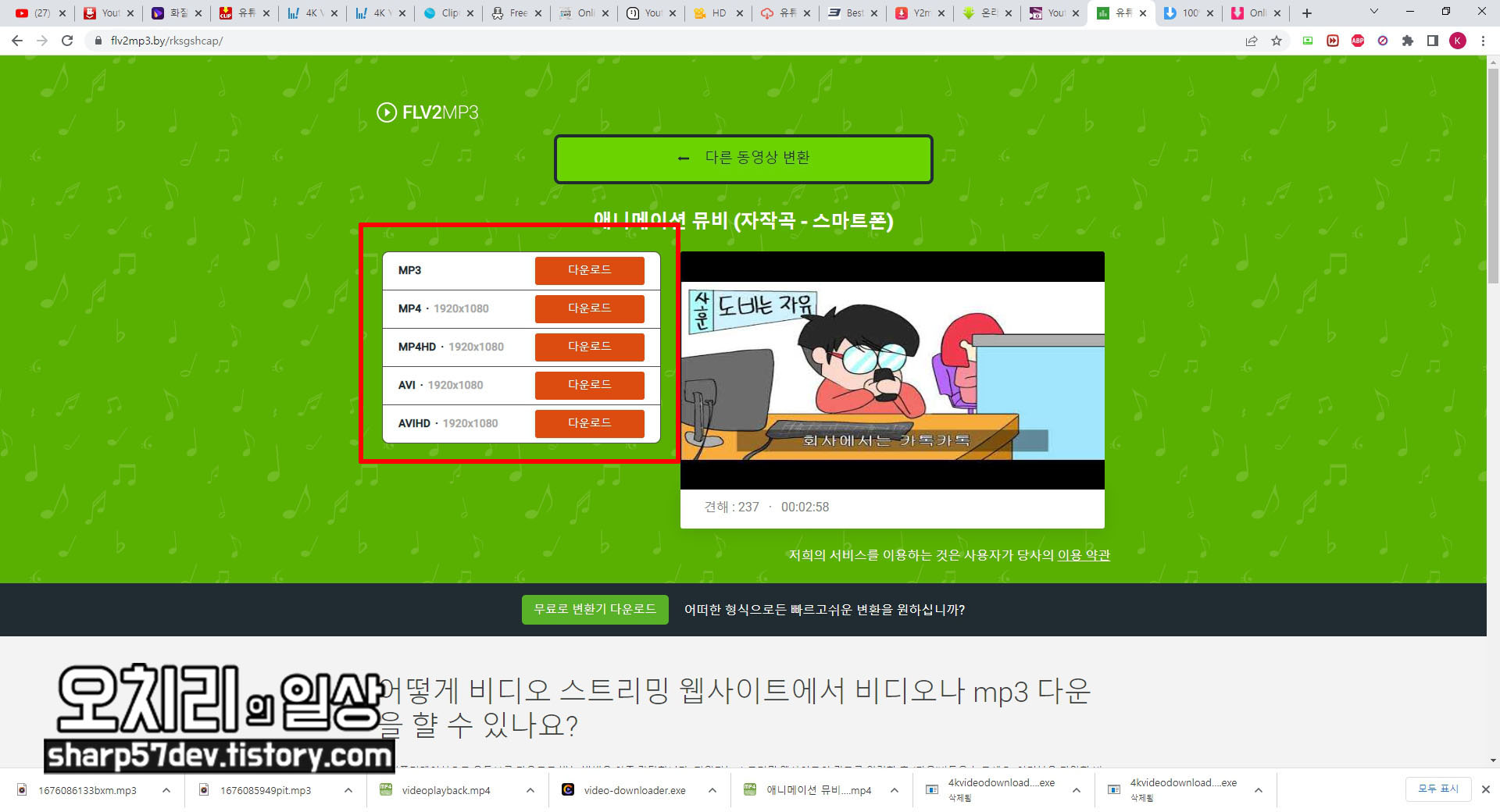 여러분도 필요에 따라 원하는 사이트에서의 방식에 따라 유튜브 동영상을 다운로드하시면 되겠습니다.