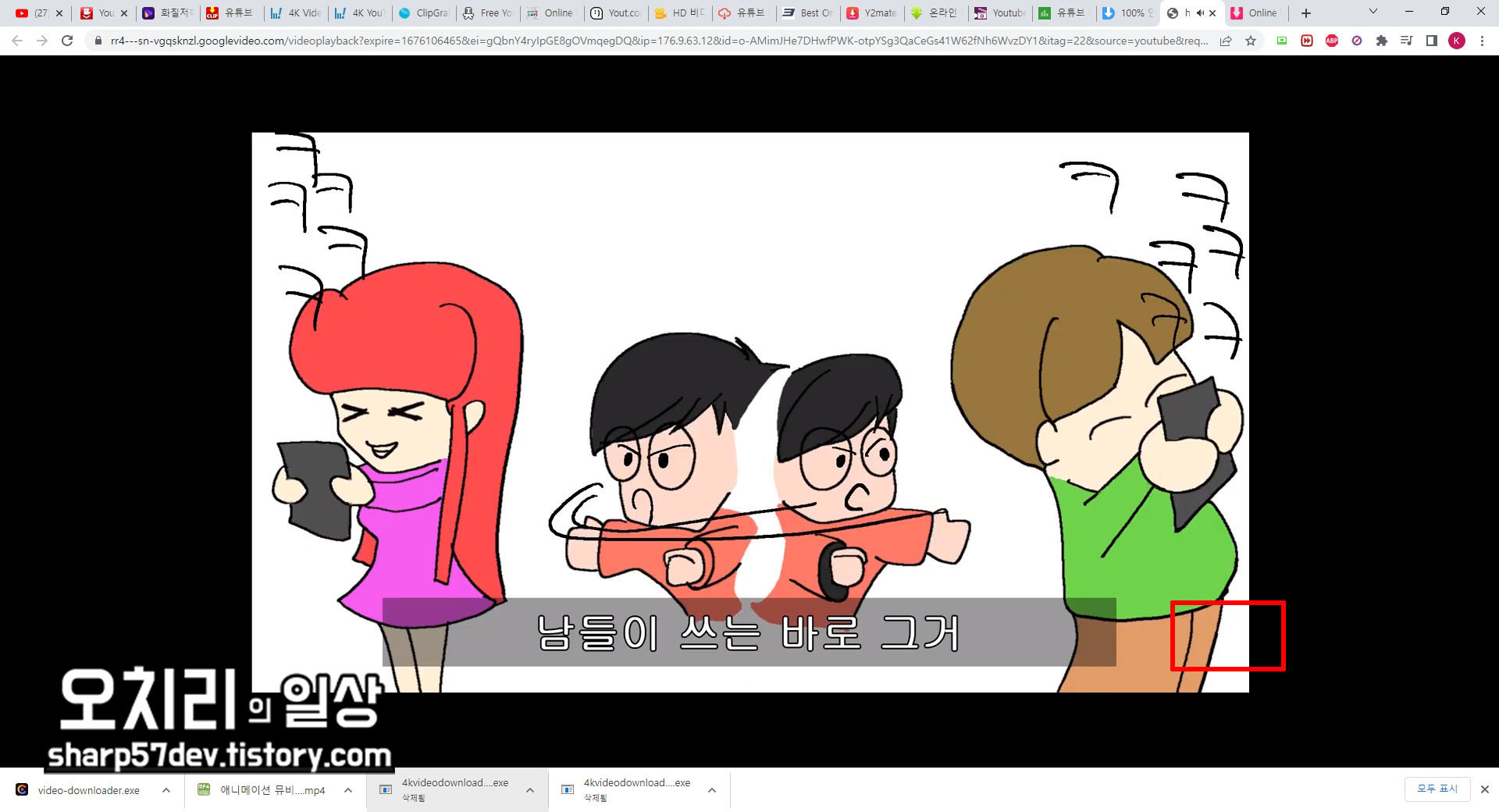이번에는 다운로드 버튼에 왕관이 없는 일반 해상도의 동영상을 다운로드해보겠습니다.