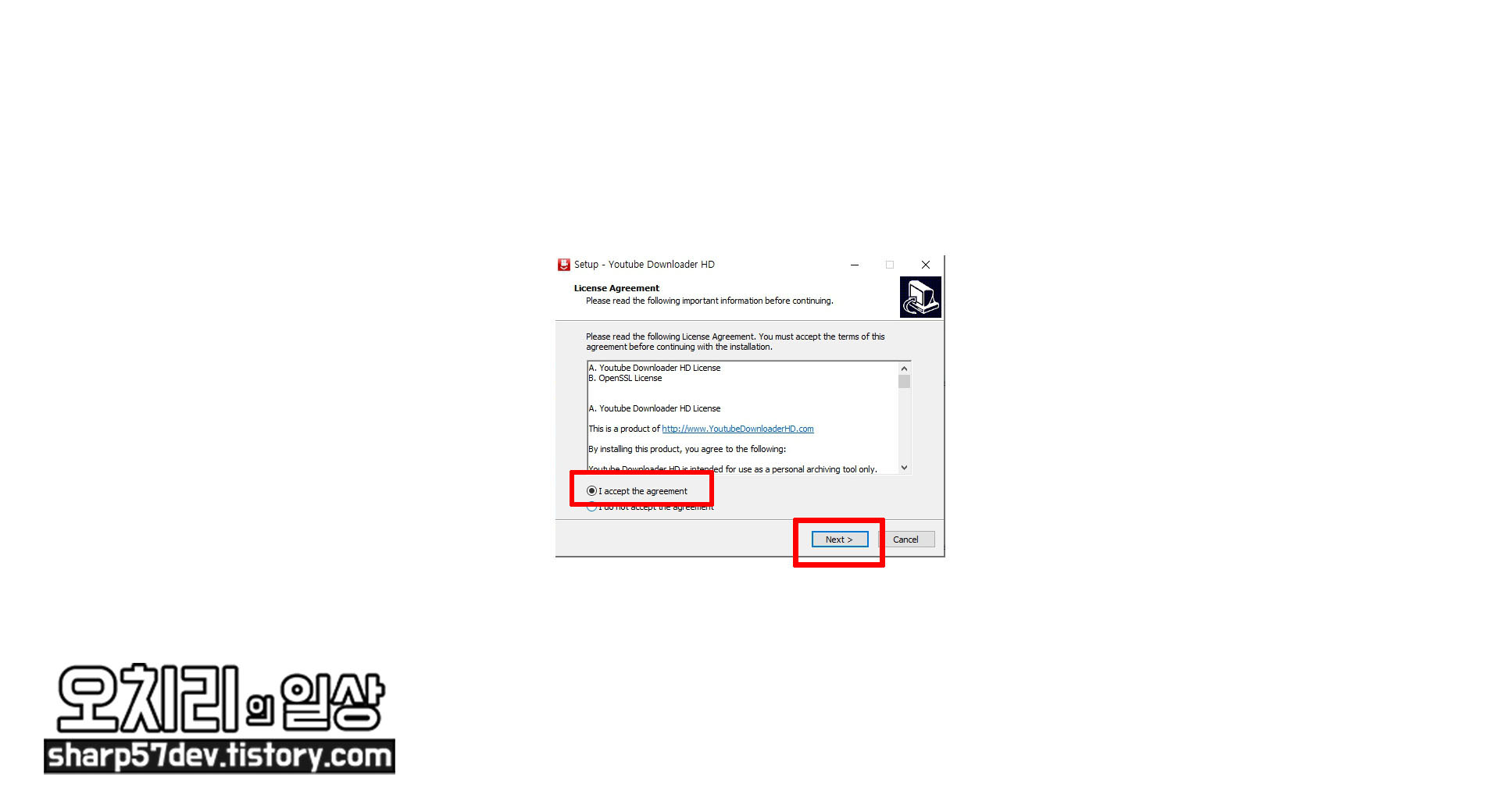 설치 시 약관에 동의하고 "Next" 버튼을 눌러 인스톨합니다.
