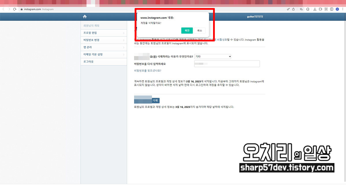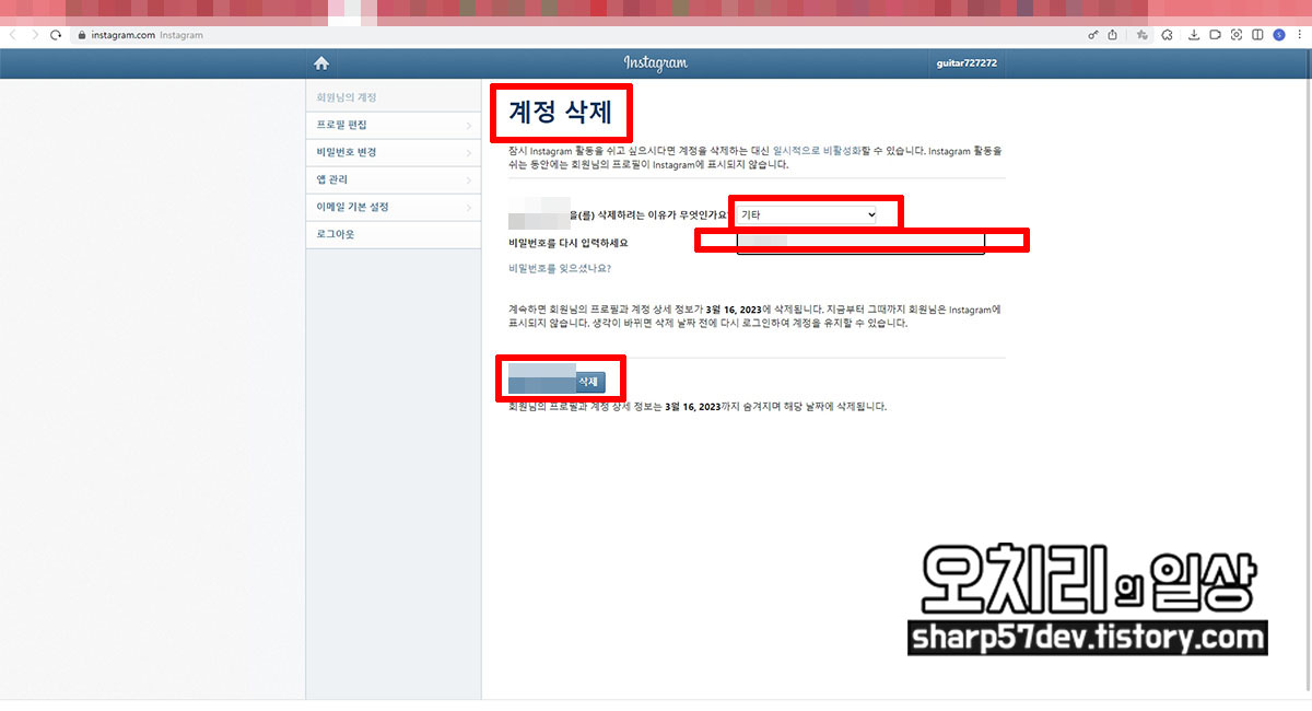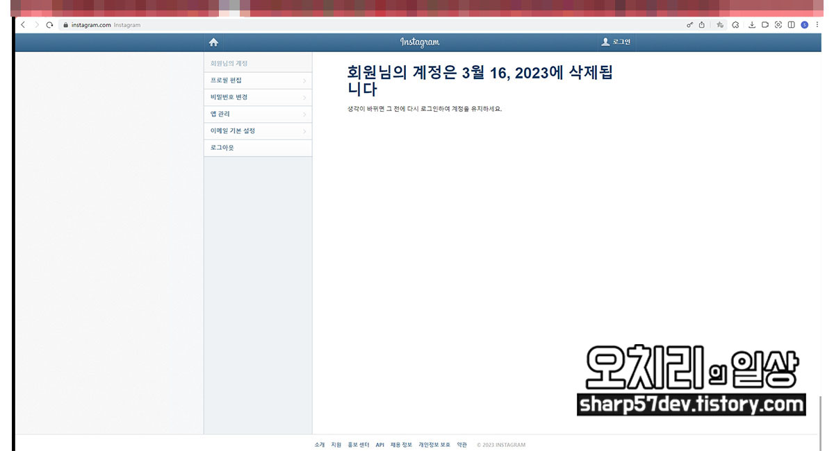 * 인스타그램 계정 탈퇴 및 계정 삭제