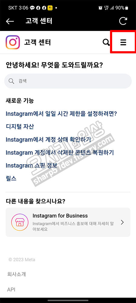 오른쪽 위에 있는 짝대기 3개가 있는 "더보기"버튼을 터치합니다.