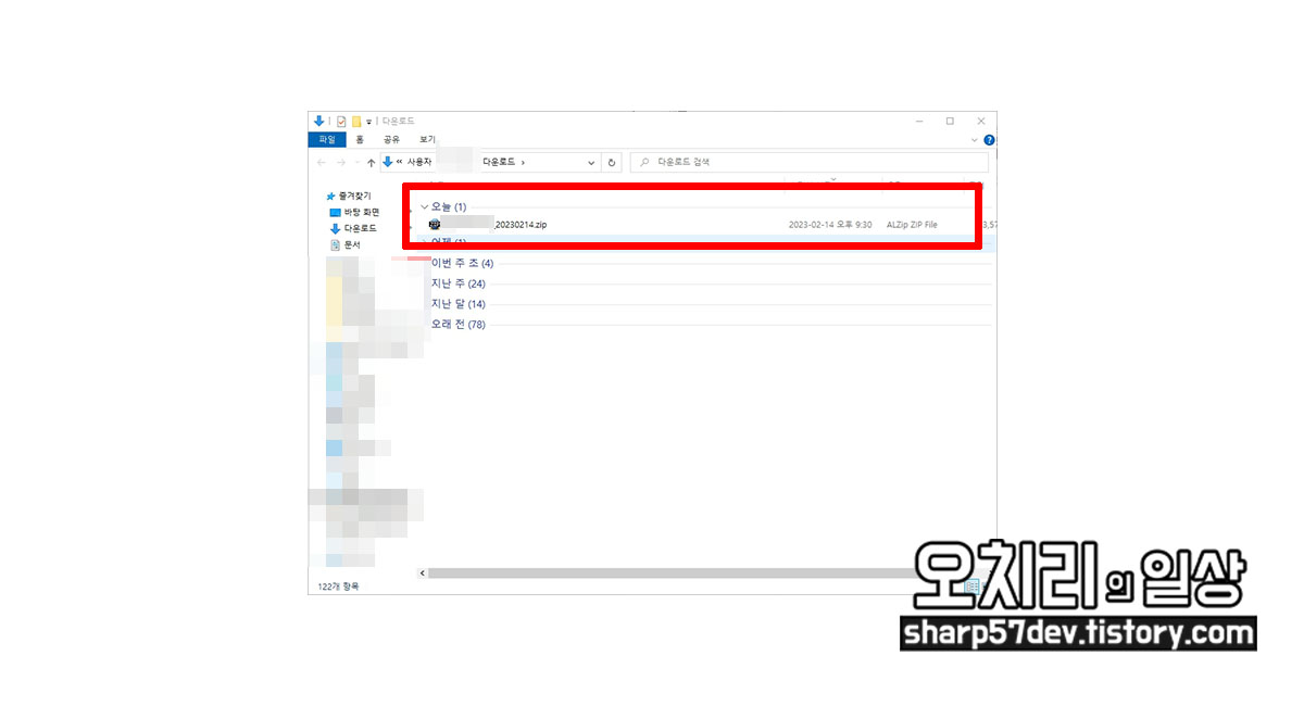 내 컴퓨터 폴더로 압축된 zip 파일이 다운로드됩니다.