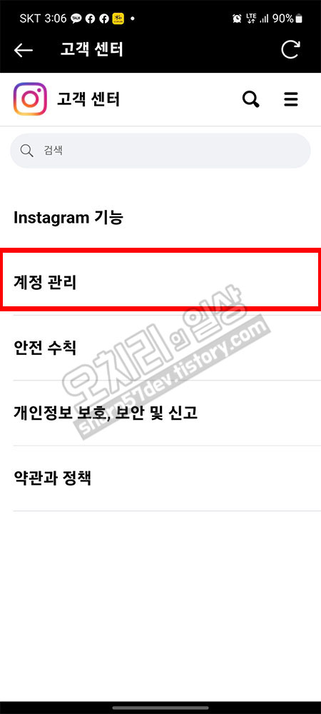 메뉴가 나타납니다. 여기서 "계정 관리"를 선택 터치합니다.