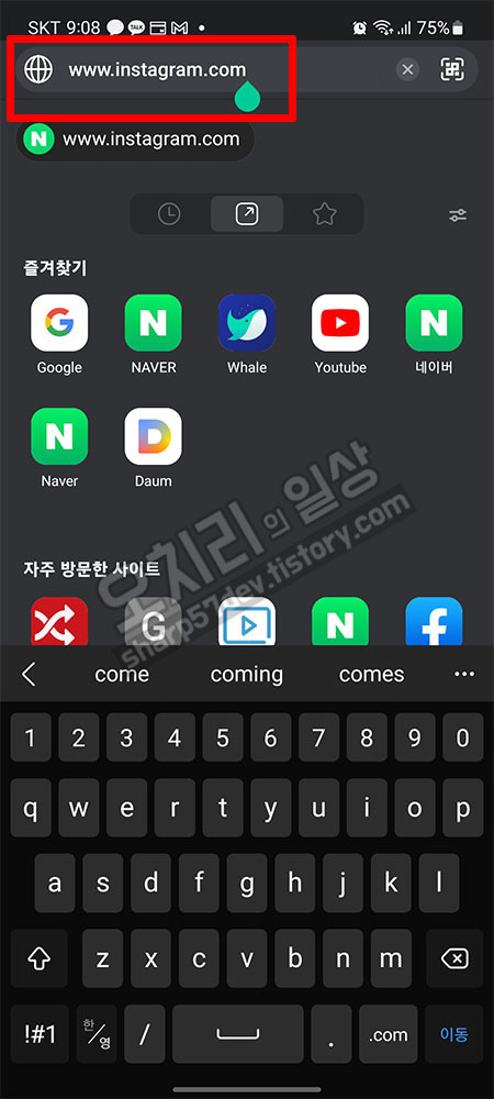 모바일에서 인스타그램 앱이 아닌 "네이버 웨일 브라우저"앱을 이용해서 인스타그램 데이터 백업과 계정 탈퇴 및 삭제 요청을 해보겠습니다.