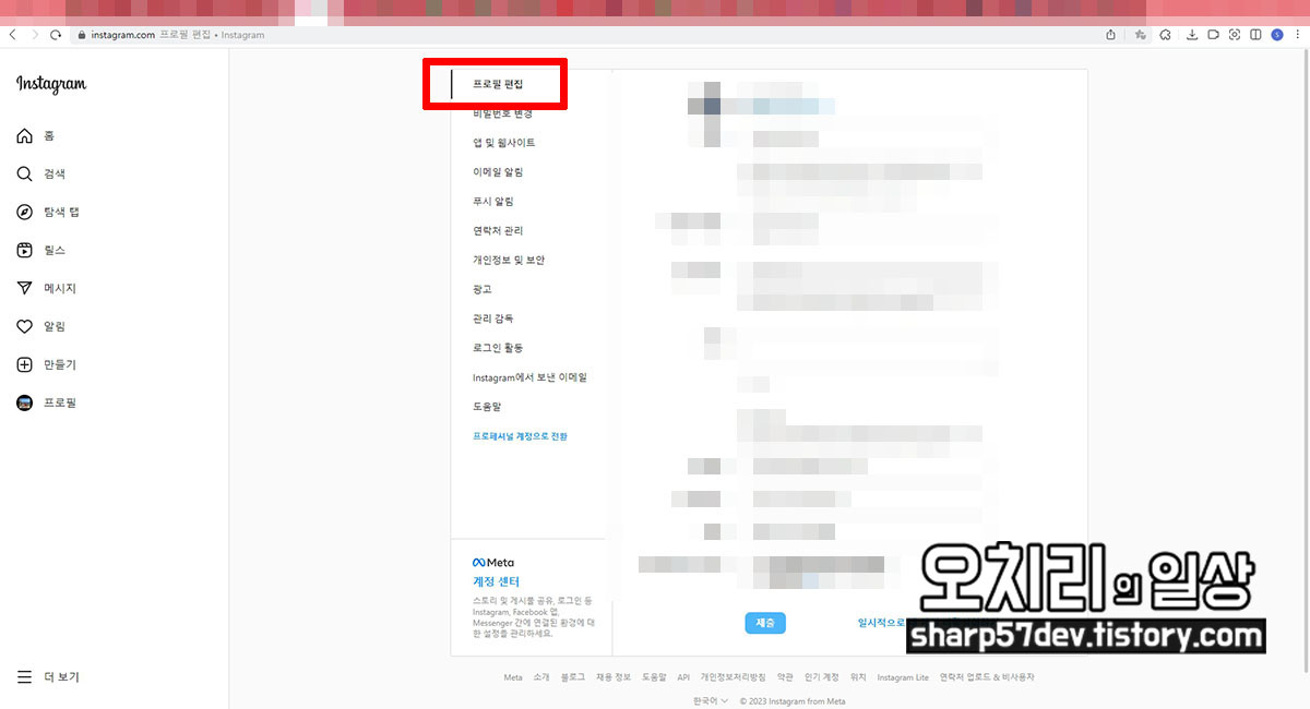일단 "프로필 편집"화면으로 이동합니다.
