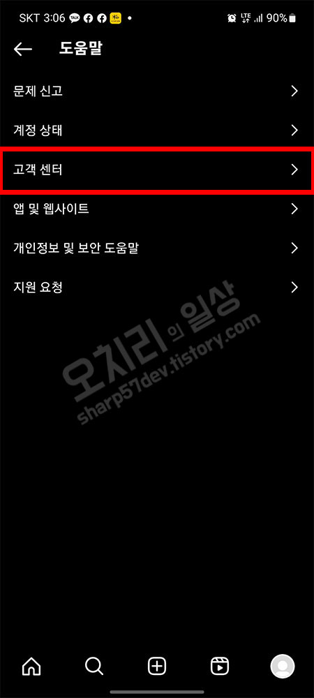 그 중에 "고객 센터"메뉴를 터치합니다.