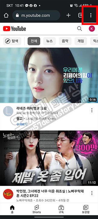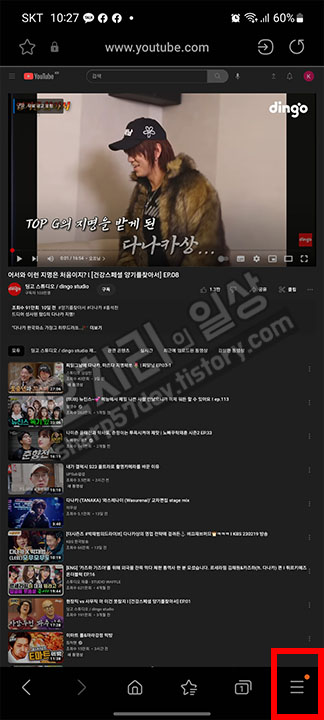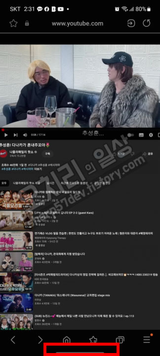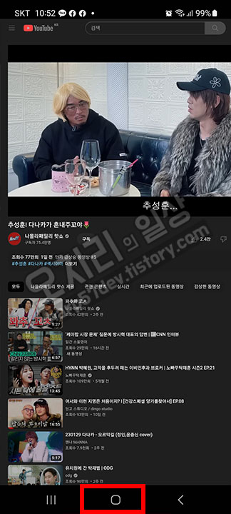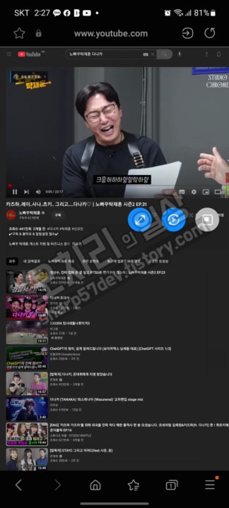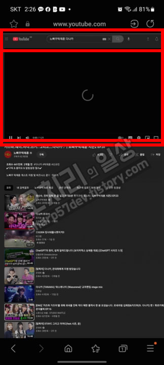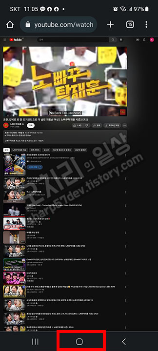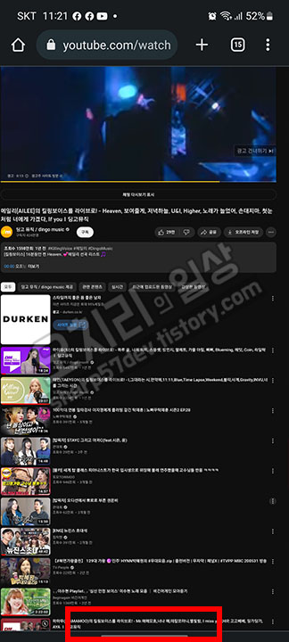 그리고 사용자 님이 원하시는 유튜브를 터치해서 재생시킵니다.