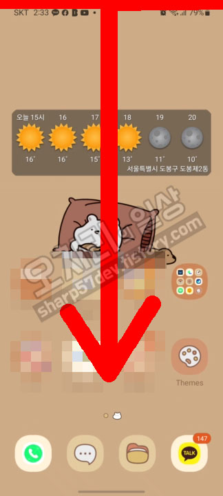 이번에도 바탕화면에서 상태바부터 쭈욱 손가락으로 내려서 알림창이 나오게 합니다.