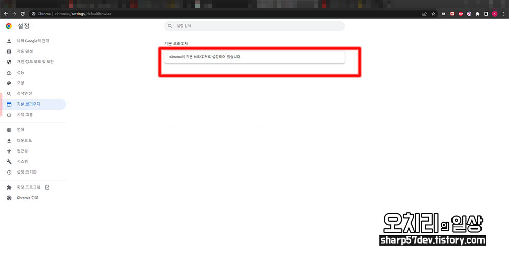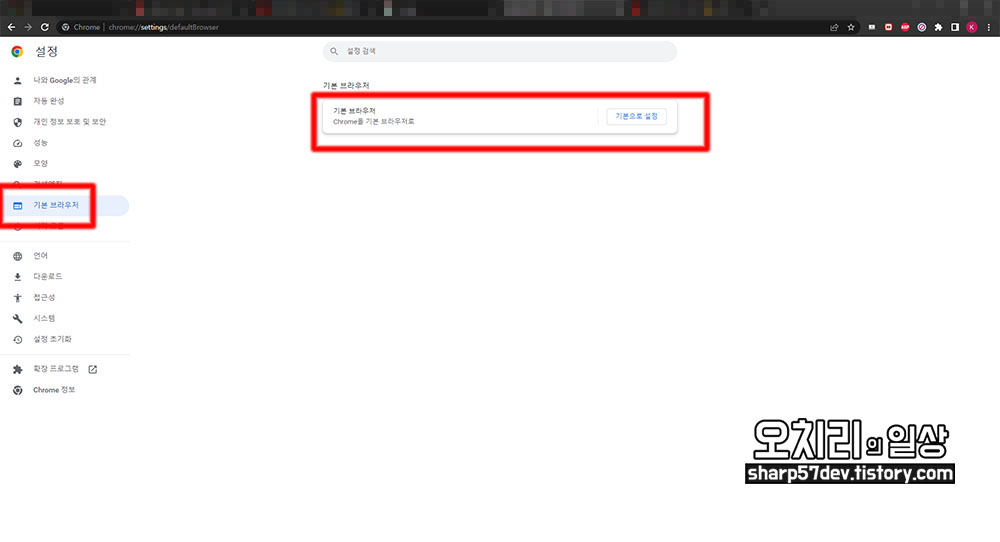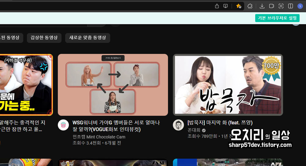 위 사진도 오른쪽 위에 "기본 브라우저로 설정"버튼이 있습니다.