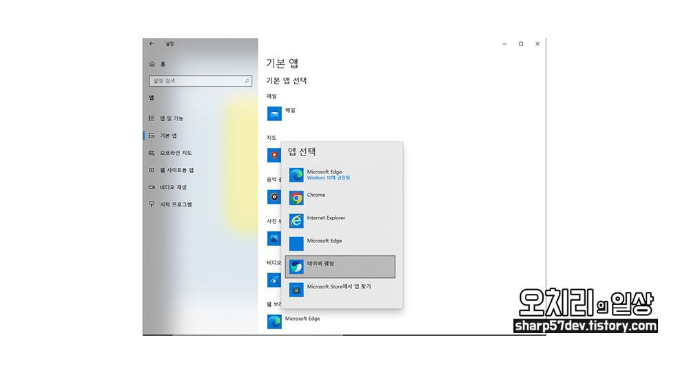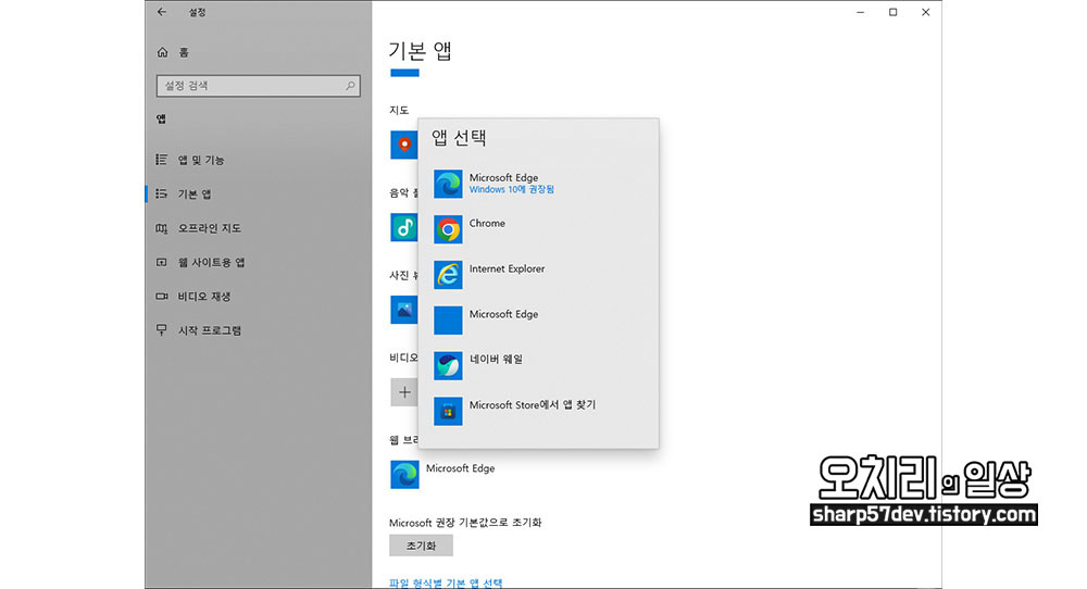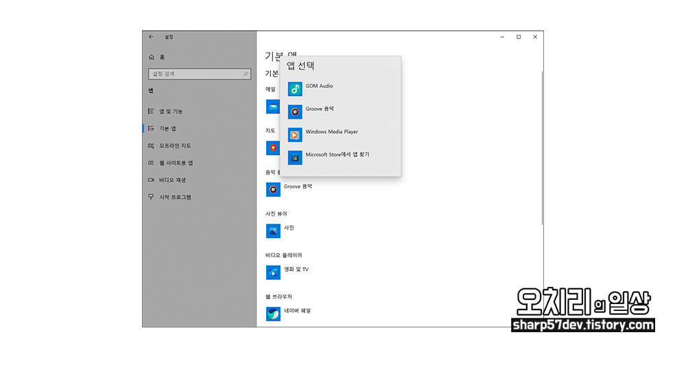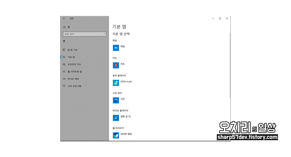 그럼 이제 기본 앱 내가 원하는 기본앱으로 설정해 보겠습니다.