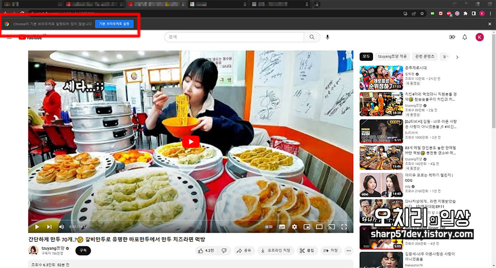 이 상황에서 크롬브라우저를 열어보았습니다. 여기에 더 유튜브 사이트를 열었습니다.
