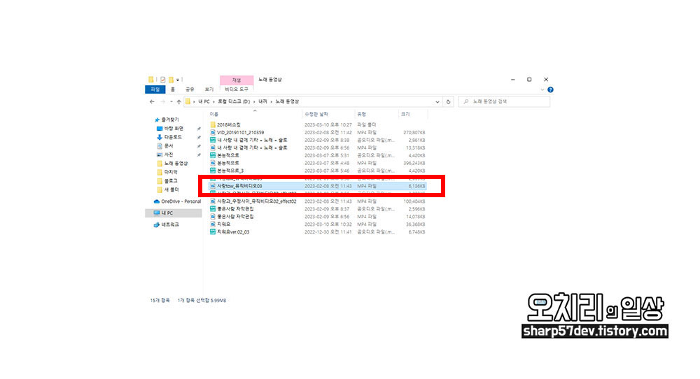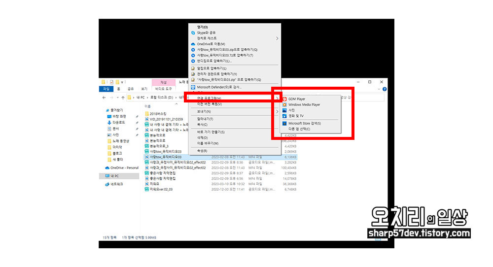 동영상 파일을 오른쪽 마우스 클릭합니다.