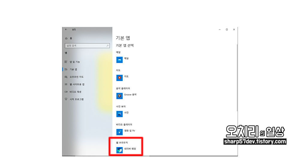 그럼 저는 "네이버 웰일"을 클릭하여 기본 앱으로 바꿉니다.