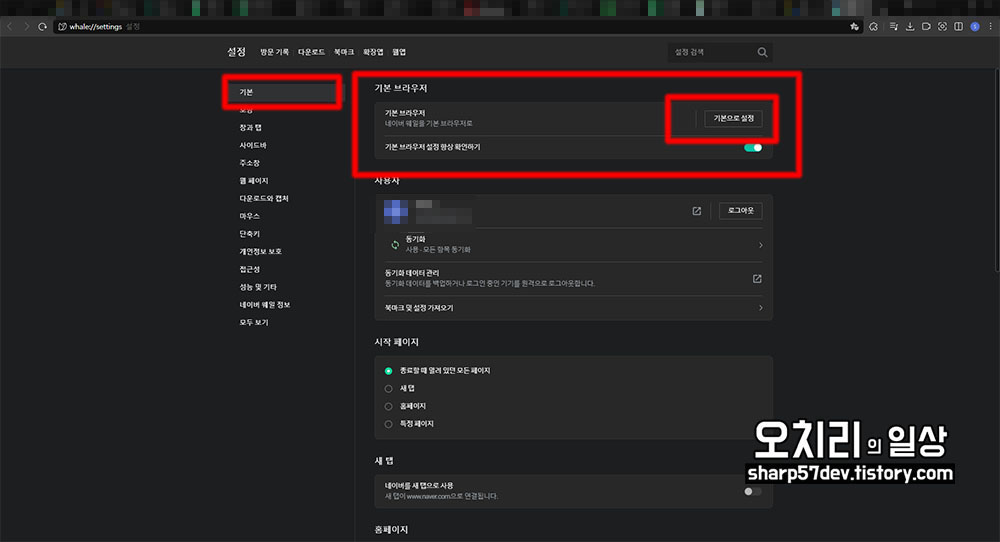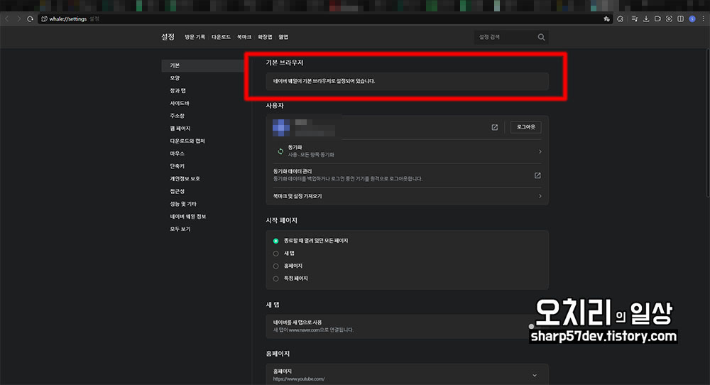 이 버튼도 누르면 다른 브라우저 아닌 "네이버 웨일 브라우저"로만 링크들이 열리게 될 것입니다.