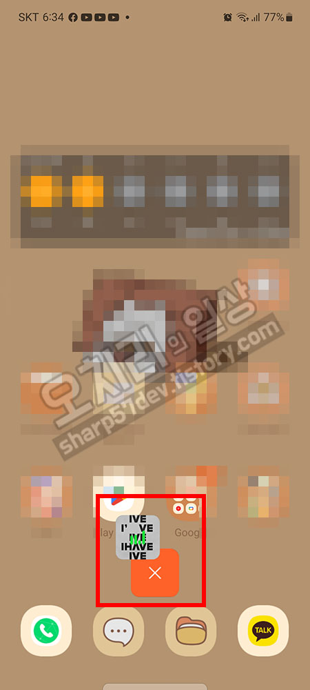 이렇게 되면 뮤직 위젯은 어떻게 종료시키냐고 궁금해하실 분들이 계시는데요. 뮤직 위젯을 롱클릭 한 다음에 위젯을 움직일 수가 있습니다. 이때 화면아래에 [X] 모양의 버튼이 나타나는데요. 뮤직 위젯을 이 [X]의 중앙으로 맞춰 넣으면 뮤직이 종료됩니다.