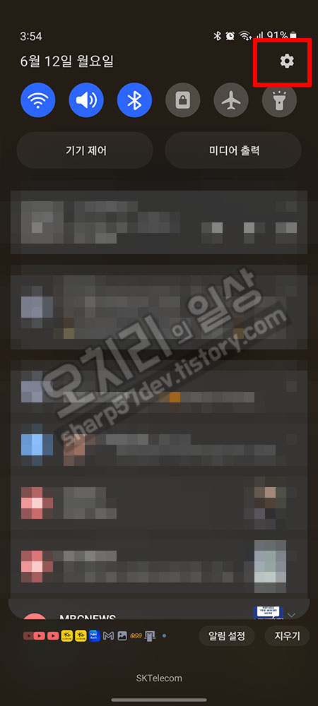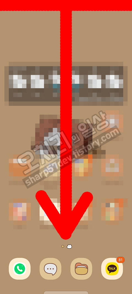 핸드폰 자체 글자 크기 조절하는 방법에 대해서 알아보겠습니다. 핸드폰 맨 위의 상태바를 눌러서 아래로 스크롤합니다.