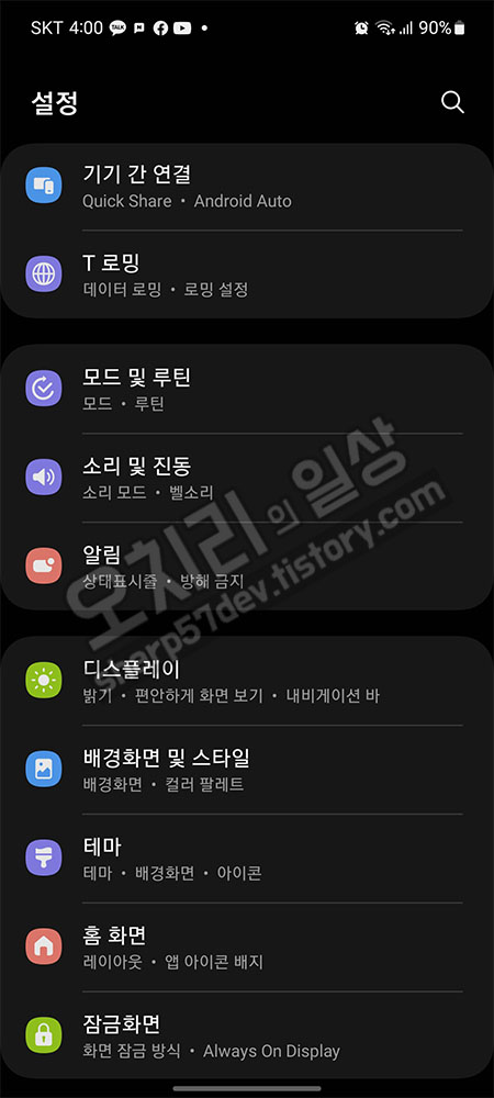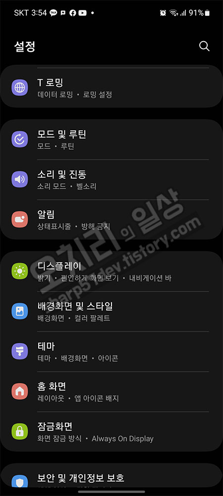 그리고 화면 뒤로 버튼으로 이 설정 화면을 나가보겠습니다.